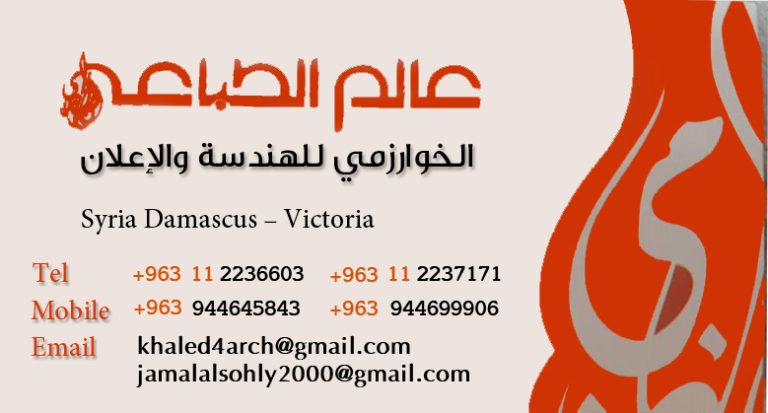 | العنوان التفصيلي: | دمشق - فكتوريا - مطبعة الخوارزمي - خلف سينما دمشق |